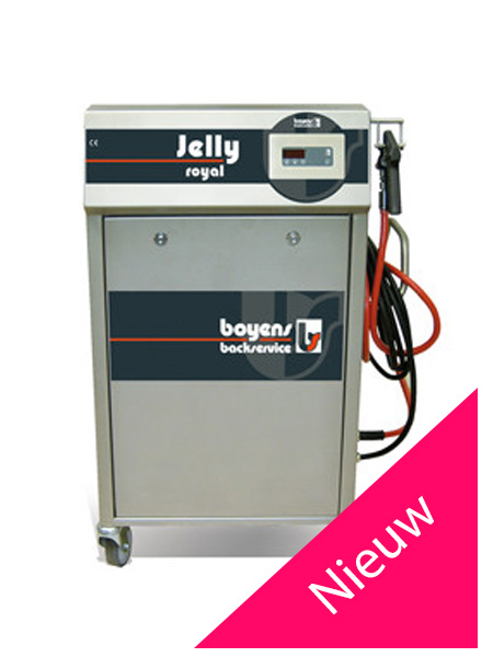 Jelly sprayer for spraying jelly directly from the Bag in Box packaging. For stock 2x BiB, total emptying closed cabinet, movable hose is heated up to the spraying gun. 1 spraying gun, digital temperature display