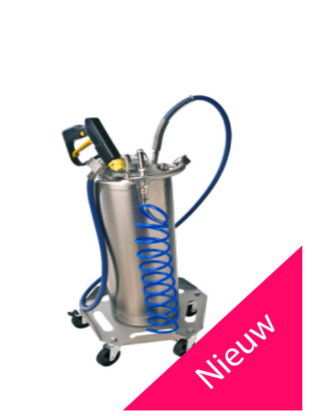Airlesssprühgerät mit Rollwagen, Schlauch und Sprühpistole wahlweise mit Vorsatz zum Zapfen, Spiralschlauch zum Anschluss an vorhandene Druckluft